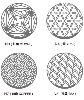 48 種類の多彩な柄を持つコースタートップとスタッキング可能なコースターベース。