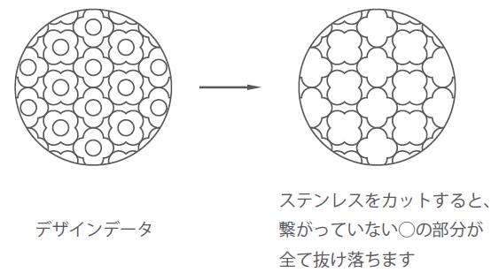柄が全て繋がっていないとステンレスをカットをする際に繋がっていない部分が抜け落ちてしまいます。
